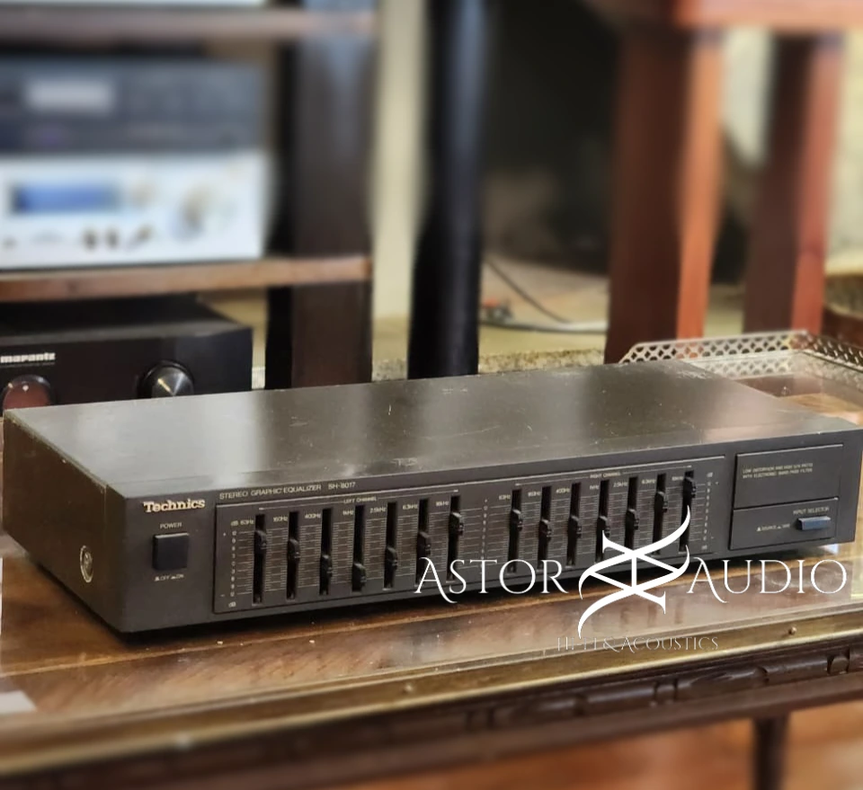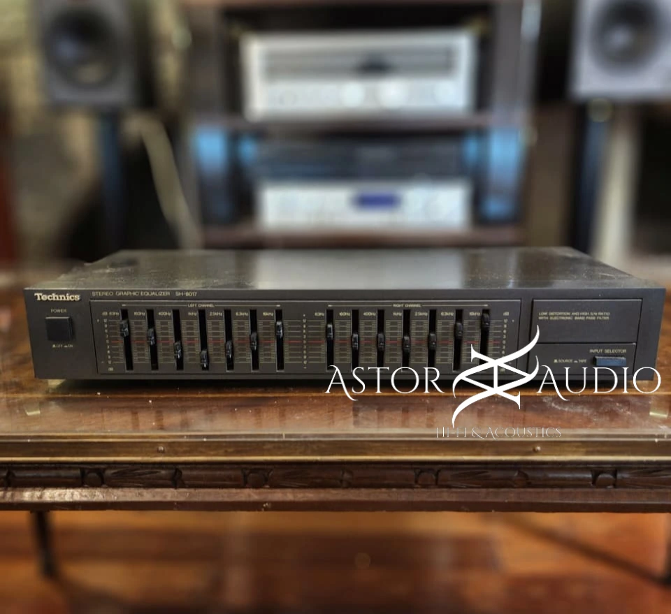 El ecualizador gráfico Technics SH-8017 es un ecualizador estéreo de alta fidelidad que representa la ingeniería de audio japonesa de la época dorada del Hi-Fi. Fabricado por Technics, este equipo fue diseñado para ofrecer un control preciso sobre la respuesta de frecuencia del sistema de sonido, permitiendo ajustar el carácter del audio según el espacio, los parlantes o las preferencias del oyente. Este modelo cuenta con múltiples bandas de ecualización que permiten modificar con gran precisión las frecuencias graves, medias y agudas. Gracias a sus controles deslizantes independientes, el usuario puede moldear el sonido con exactitud, logrando desde un refuerzo profundo en los graves hasta una mayor claridad en los agudos.
